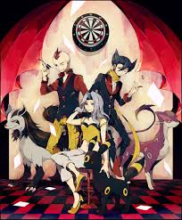 In Johto Karen is a trainer that specialized with Dark Type pokemon. This is also supported by the fact that the majority of Dark-type Pokémon. It is known as the bane of Psychic-type Pokémon because Dark-type attacks are super effective towards Psychic-type Pokémon and Dark-type Pokémon are immune to Psychic-type moves unless exposed to the move Miracle Eye.