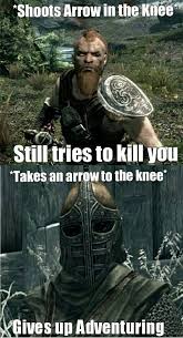 Arrow to the Knee. Share the best GIFs now. I was an adventurer like you then I took an arrow in the kneeThis happens very often and it gets very annoying after playing the game for some time.