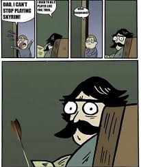 Popularised in todays culture by Skyrim with the famous phrase I used to be an adventurer like you but then I took an arrow to the knee iterated by guards that pop up in the game. Arrow to the Knee - YouTube. This meme is imitated by simply using that same type of phrase in response to anything someone does.