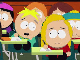 I believe I know what you are saying. The latest episode of South Park is a Butters centered episodeThe boys find out Butters has never kissed a girl they then find out a girl is selling kisses for moneyButters gets his kiss but then finds that he could be making some big profit off of selling kissesThis idea makes him a rich pimpHe starts getting more girls and more money however he also starts turning into an A-holeMeanwhile the police are trying to stop prostitution in South ParkThe chief goes undercover to bust. I know what youre saying.