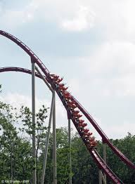 The snake head design that even includes fangs on the underside makes Diamondback one of the few modern coasters where the trains strongly identify which coaster they belong to without the use of a single stick-on logo. The only creative touch on Diamondback I can slightly commend is the look of the zero-car on the trains. This 5282-foot long BM hypercoaster spans across ten acres of terrain wooded hills and feature a spectacular splashdown ending.