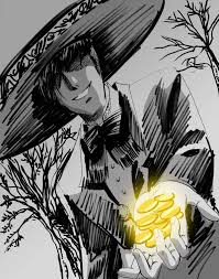 The charro appears at dusk in streets and lonely sidewalks always looking for a pedestrian to whom to offer gold coins.
