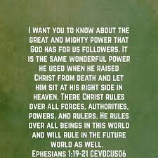 Ephesians 119-22 2560 Christ resurrection 4135 demons Christs authority over. Ephesians 119 New International Version NIV 19 and his incomparably great power for us who believe. Ephesians 119 ESV and what is the immeasurable greatness of his power toward us who believe according to the working of his great might ESV.