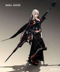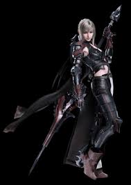 Aranea Highwind from Final Fantasy XV. Her skill in aerial combat and wielding of a lance makes her akin to a Dragoon a traditional job class from the Final Fantasy series. The Final Fantasy XV development team had been planning to release four new DLCs together titled The Dawn of the Future in spring 2019.