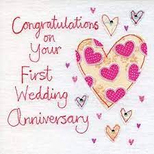 Happy 1st anniversary. Here are some latest Happy 1st Anniversary Images that you can send to your husband wife loved ones or friends to make their day memorable and smiling. Congratulations you both have successfully managed to tolerate each other for one whole year. Happy first wedding anniversary to us my awesome.