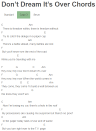 Hey now now. Hey now hey now. Hey now hey now Dont dream its over Hey now hey now When the world comes in They come they come To build a wall between us We know they wont win Now Im towing my car Theres a hole in the roof My possessions are causing me suspicion but theres no proof In the paper today Tales of war and of waste But you turn right over to the TV.