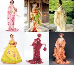 These are the white kimono the over robe called the uchikake a ceremonial fan a large white hood called the wataboshi the tsunokakushi which is the ceremonial headband and an elaborate heavily ornamented hairstyle that is often a wig. Traditionally a Japanese bride would wear a furisode long-sleeve Kimono but some brides are modifying their garments to add their own unique spin on the traditional Western wedding dress. The most common kimono wedding dress material is silk.