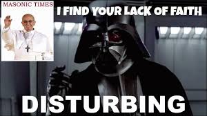 What we see here is a contrast between truth and perceptionwhat we know and believe to be true and what we perceive to be true. I find your lack of faith disturbing is a response phrase used to denote disapproval with a sinister edge and implications. Another way to say Lack Of Faith.