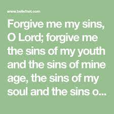 Oh God forgive me when I whine I have two ears the world is mine With feet to take me where Id go with eyes to see the sunsets glow with ears to hear what I would know I am blessed indeed. For anger I shouldnt have Against anyone. Forgive me the sins of my youth and the sins of mine age the sins of my soul and the sins of my body my secret and my whispering sins the sins I have done to please.
