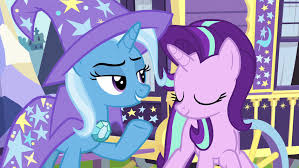 Friendship Is Magic developed by Lauren Faust originally aired on the Discovery Family channel in the United StatesThe series is based on Hasbros My Little Pony line of toys and animated works and is often referred by collectors to be the fourth generation or G4 of the My Little Pony franchise. Having found the Changeling hive Starlight Glimmer Trixie Thorax and Discord hunt through its corridors to rescue the princesses and Starlights friends from Queen Chrysalis. Starlight Glimmer has certainly come a long way but when she is invited to the annual Sunset Festival at her old village shes terrified of being placed in a position of leadership again.