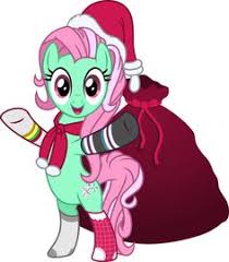 Friendship is Magic Issue 33 page 4 at the mercy of the evil living apples on Issue 46 pages 3 and 10 and on Issue 47 pages 18-19 helping to distract a Tatzlwurm. Minty accidentally breaks the Here Comes Christmas Candy Cane which apparently guides Santa Claus to Ponyville.