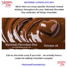 According to the Associations webpage there are actually 3 National Chocolate Days throughout the year on July 7th October 28th and December 28th. Other chocolate day celebrations exist such as National Chocolate Day in. Just as the holiday festivities are behind us and a new year begins we look forward to the luscious confection that puts a smile on everyones face and brightens our outlook for whatever waits for us in the new year ahead.