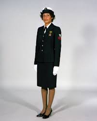 White gloves were authorized if the occasion required. Officers Winter Dress Blue Uniform This is the same Officers uniform shown in figure 12 but now worn with the blue cap. The full uniform included a black purse black shoes blue service coat blue skirt hat or garrison cap blouse black tie and beige hose.