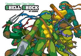 The shell can also be interchanged depending on the opponent. When Shellshock is enlarged he says Waitll those teenage mutants see what a full-grown turtle can do referring to the Teenage Mutant Ninja Turtles. In contexts of TMNT its usually used as a title or term dealing with a pun.