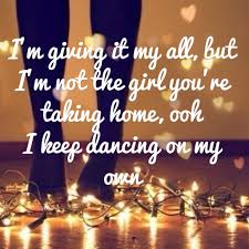 On My Own Lyrics. Did all this shit on my own Did all this shit on my own Im touchin knee on the floor I pray to Go. And I keep dancing on my own And oh no So far away But still so near The lights come on The music dies But you dont see me standing here I just came to say goodbye Im in the corner Watching you kiss her Oh oh oh And Im giving it my all But Im not the guy youre taking home Oh oh oh And I keep dancing on my own And no no Said Im in the.