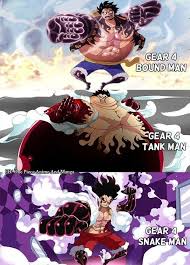Cari produk Action Figure lainnya di Tokopedia. During his battle with Charlotte Katakuri Luffy revealed the third form of Gear Fourth known as SnakemanUnlike his other two Gear Fourth forms Luffy does not significantly expand with his forearms and legs being only slightly enlarged and the rest of his body retaining its normal proportions. Gear Second is a technique that enhances the users strength speed and mobility.