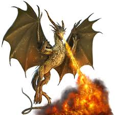 An old or older gold dragon is surrounded by an aura of fire. This ability is the equivalent of a 2nd-level spell. Golden scales cover the body of this majestic dragon and a regal crest of horns arches backward above wise and piercing eyes.