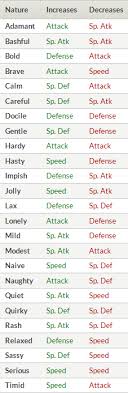 For the incense item introduced in Generation IV see Lax Incense. A sortable table of all Pokémon natures in Sun and Moon with full explanation of nature effects bonuses and decreases. Specifically all but five Natures can affect two stats increasing one by 10 and decreasing another by 10.