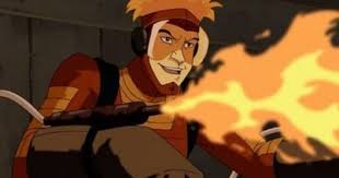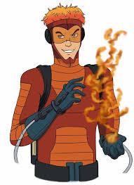 He is a mutant with the power to control fire though he can not actually project it from his body so he uses a lighter.