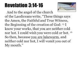 15 I know thy works that thou art neither cold nor hot. Revelation 317 17 t For you say I am rich I have prospered and I need nothing not realizing that you are wretched pitiable poor u blind and naked. I would thou wert cold or hot.