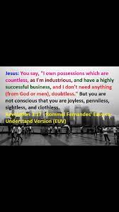Bible Our Library Bible Commentaries A Testimony of Jesus Christ Revelation 3 Revelation 317. Revelation 317 New International Version NIV 17 You say I am rich. To conceit and self-deception the prophet wrathfully ascribes the religious.