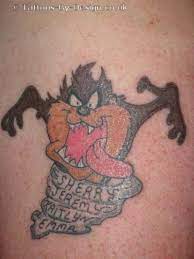 You might recognize it as the character of Taz from the Looney. Tasmanian Devil Tattoo Idea. Yasmani got the tattoo to represent his Cuban Heritage.