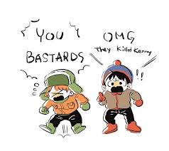 They killed Kenny line to the mutant clone and then he screams You bastard at the. Kenny dies a lot. Kyle says the Oh my God.