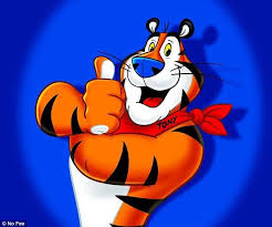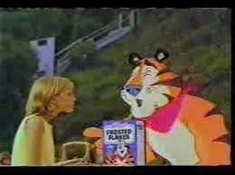 Theyre Gr-r-reat the rs in Great being drawn-out. Tony the Tiger is the advertising cartoon mascot for Kelloggs Frosted Flakes breakfast cereal appearing on its packaging and advertising.