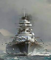Bismarck in motion king of the ocean He was made to rule the waves across the seven seas To lead the warmachine. By the start of World War II Bismarck was one of the mightiest battleships in the world owing to her advanced gunfire control system and powerful artillery. The plume on the right is definately after the hood blew up while the trailing smoke must be the PoW.